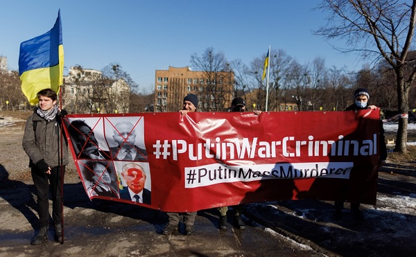 "პუტინი ომის დამნაშავეა" - შოლცის ვიზიტის პარალელურად კიევში დემონსტრაცია გაიმართა